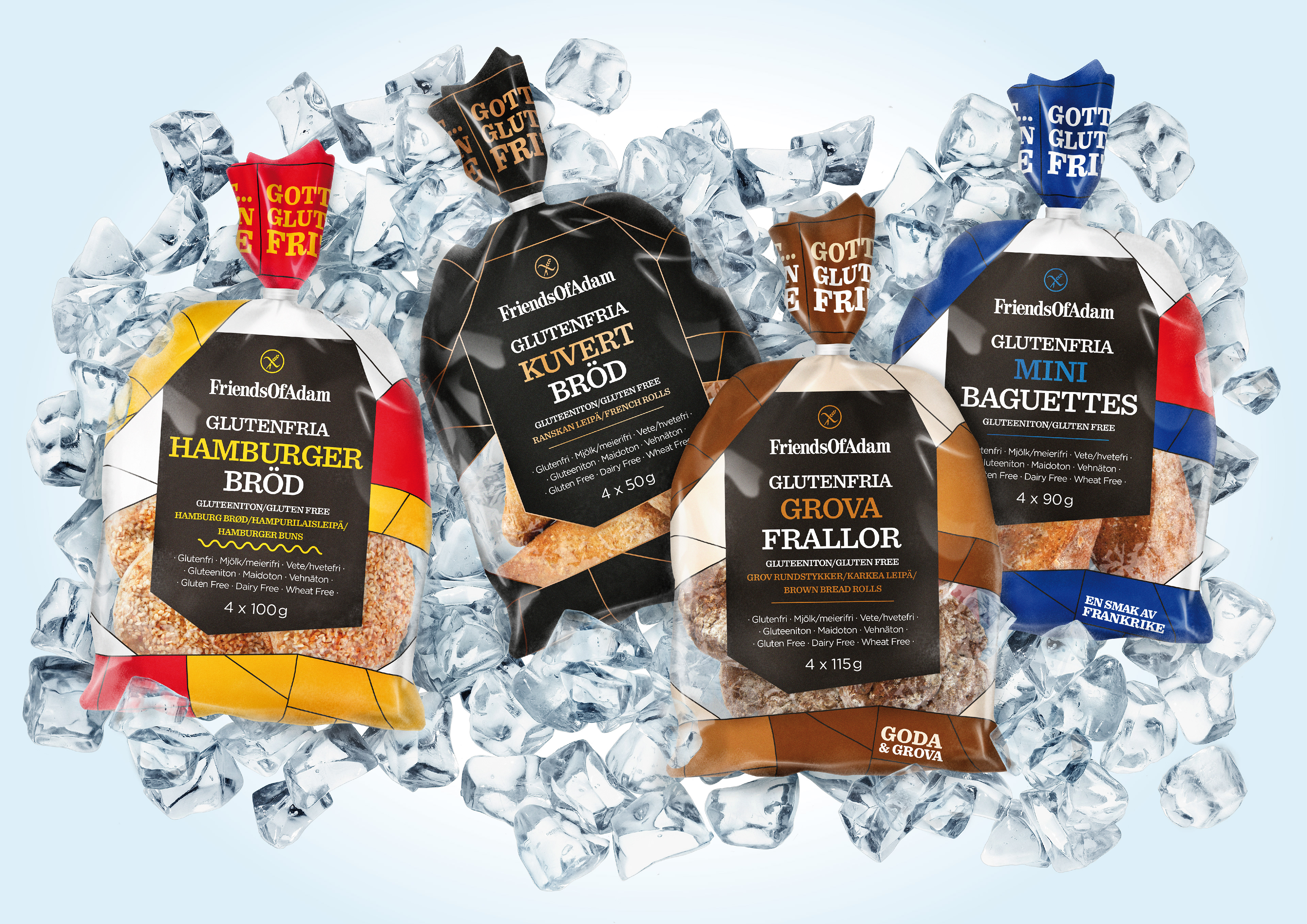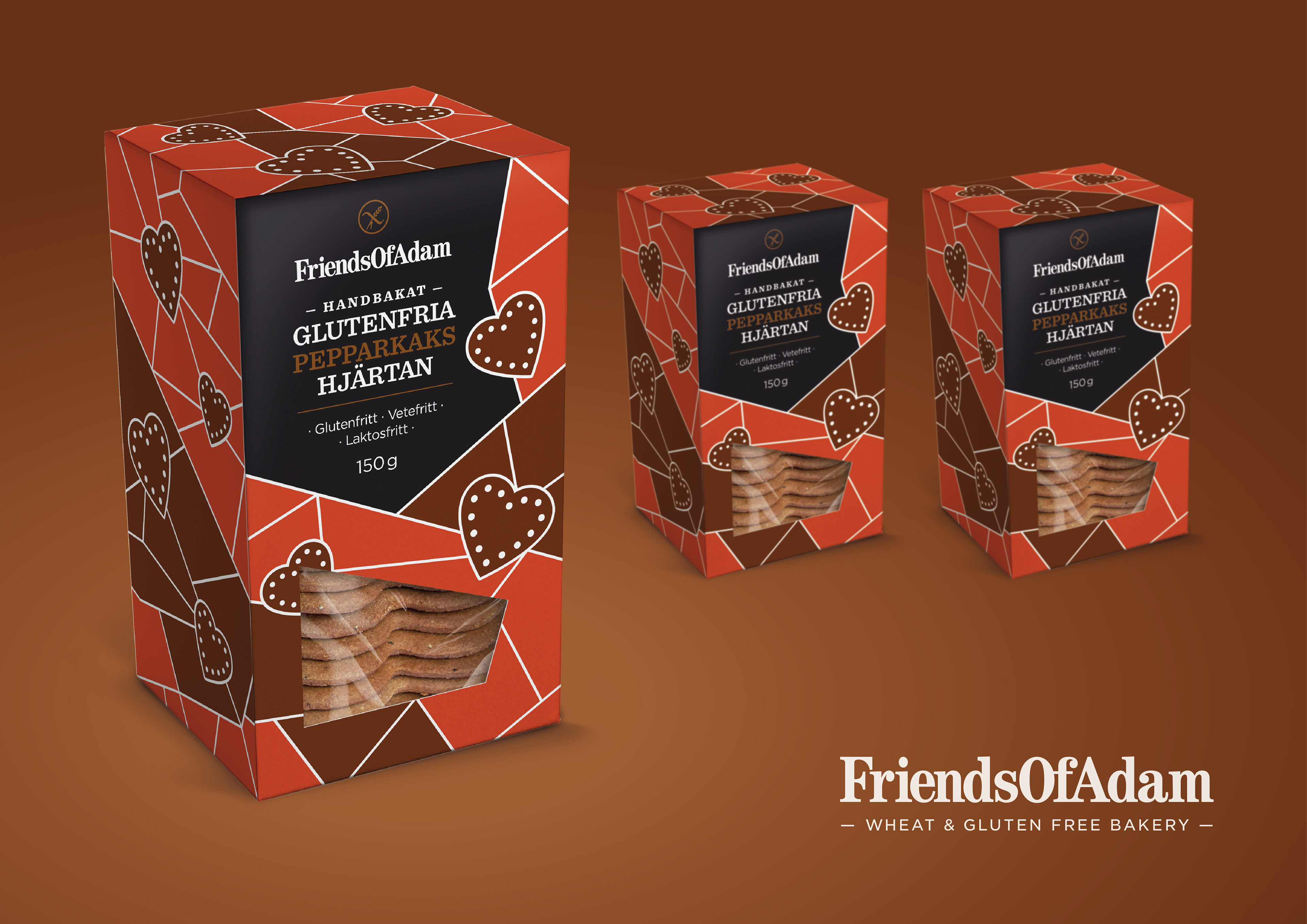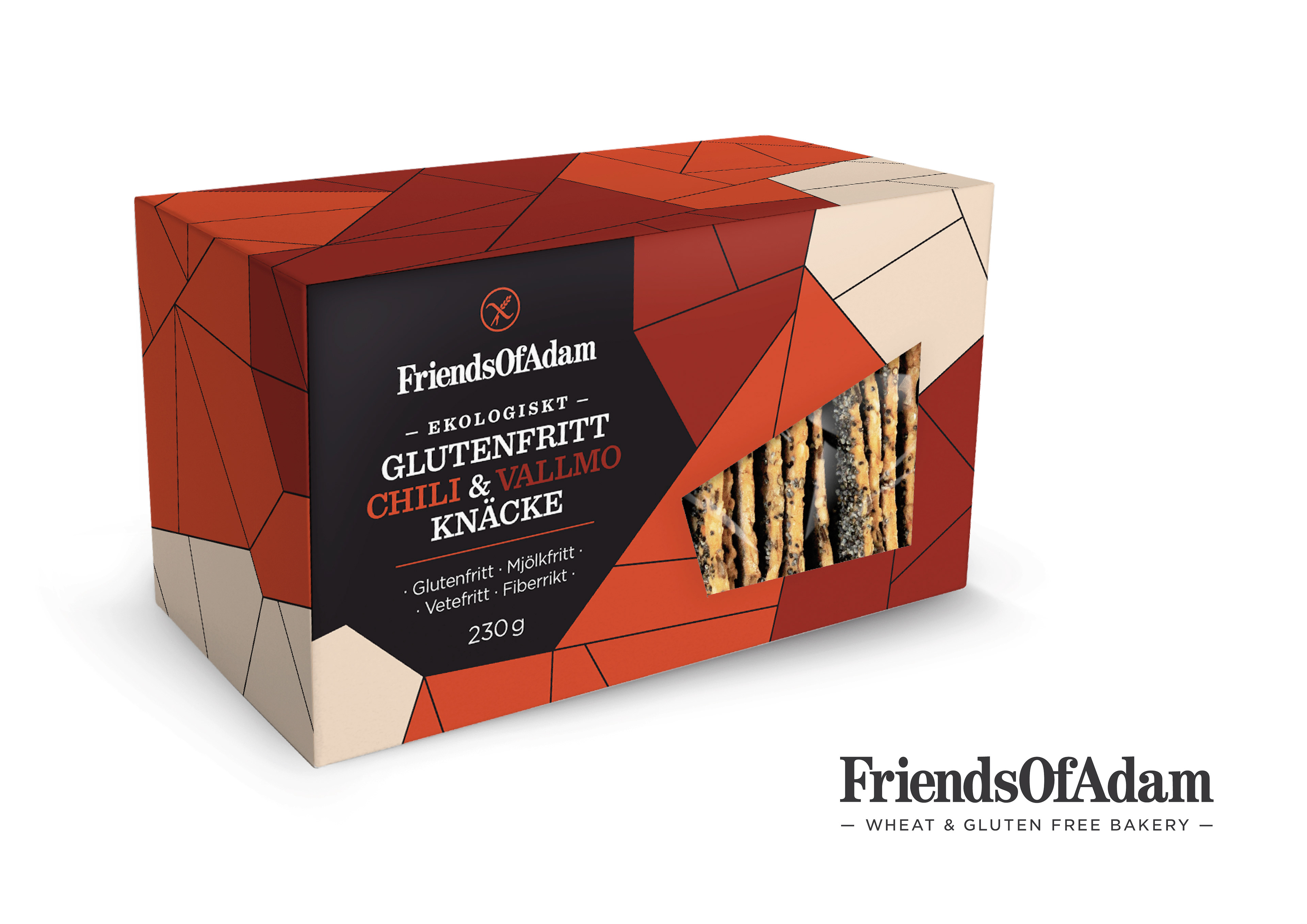Friends of Adam is an artisan bakery specialising in tasty gluten free produce for everyone to enjoy. Their packaging was lacking impact and needed a bit of oomph to give the range a clear identity on shelf.